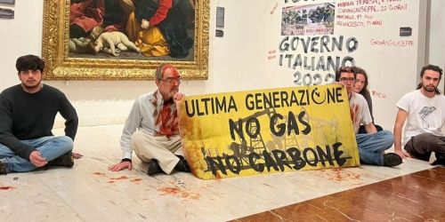 Cinque attivisti di “Ultima generazione” si sono versati addosso salsa di pomodoro e hanno macchiato gli ambienti