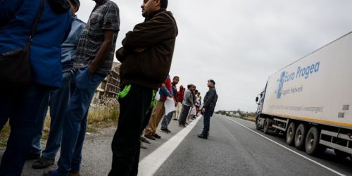 “Se nessun documento, ci sparana, ucciderci” si legge su uno dei cartelli esposti dai migranti ospiti di uno dei Cas di Amendolara nel corso della pr…