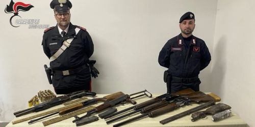 Un vero e proprio deposito scoperto dai Carabinieri. All’interno tre fucili semiautomatici, un fucile a pompa e una mitragliatrice AK47