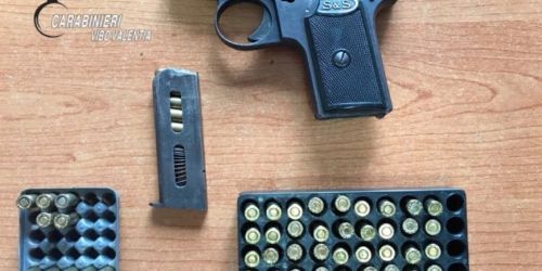 Nel corso di una perquisizione a Nicotera i carabinieri hanno trovato, nascosta in un cassetto, una pistola con matricola abrasa e 61 proiettili. Ai…