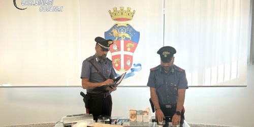 I carabinieri hanno fermato i due a Luzzi. Trovati dosi di droga, oltre 20mila euro in contanti e un fucile con matricola abrasa