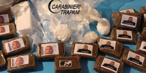 Scoperto a Marsala un deposito di sostanze stupefacenti. Panetti di hashish con le foto dei boss