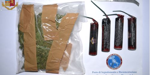 Alla vista dei militari ha lanciato via una busta contenente sostanza stupefacente. Nella casa di campagna deteneva 100 grammi di marijuana