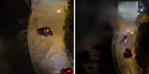Mare in tempesta a Scilla, strade invase dall’acqua: paura per automobilisti e pedoni – VIDEO