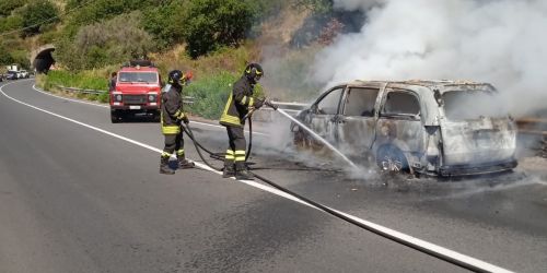 Evitata la tragedia sulla statale 18. I due a bordo del veicolo, accortisi delle fiamme sono riusciti in tempo a mettersi in salvo