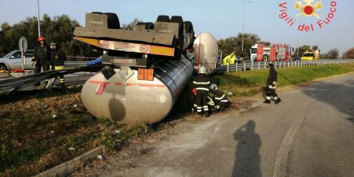 Autocisterna carica di carburante si ribalta lungo la statale 106 – FOTO