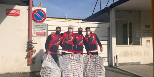 Accolti tra stupore e sorrisi da parte di bambini, genitori e operatori sanitari, i giocatori rossoblù hanno consegnato pacchi regalo
