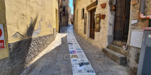 Badolato a difesa dell’informazione, un tappeto di giornali per le vie della città