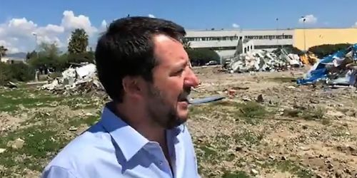 Salvini a San Ferdinando: «Promessa mantenuta, usate le ruspe» – VIDEO