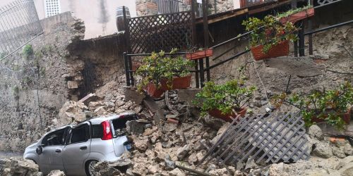 Le forti piogge hanno provocato il cedimento della stradina sovrastante. Preoccupazione per gli abitanti della zona. Il maltempo sta causando danni s…
