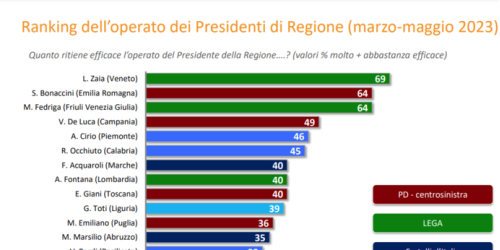Il presidente della Regione Calabria, con il 45% dei consensi, segue Bonaccini, Fedriga, De Luca e Cirio. Male il siciliano Schifani