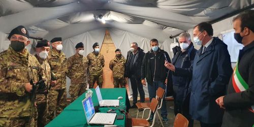 Il ministro visita l’ospedale da campo di Cosenza insieme al Capo della Protezione Civile. La struttura ospiterà 40 pazienti e saranno processati cir…