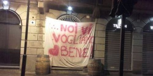 «Vi vogliamo bene», lo striscione nel bar chiuso per mafia