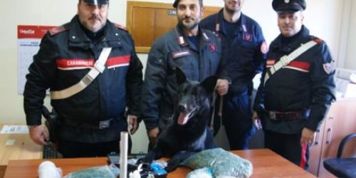 Il pastore tedesco dei carabinieri di Scalea all’opera. Prima scova parte della droga in un tombino e poi un una gabbia per uccelli