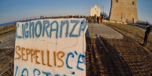 CROTONE Un “happening” a metà tra manifestazione di protesta e lezione a cielo aperto, in materia di tutela dei beni culturali. È stata soprattutto q…
