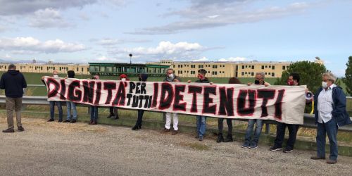 Mobilitazione di attivisti per protestare contro le condizioni in cui versano i carcerati dell’istituto penitenziario della città. Esposto uno strisc…