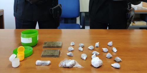 Rinvenuti e sequestrati 200 grammi circa di hashish, divisi in due panetti, 30 grammi di marijuana e 1 grammo circa di eroina