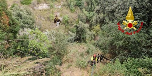 Cavallo precipita in un dirupo per 30 metri nel Crotonese, salvato dai vigili del fuoco – FOTO