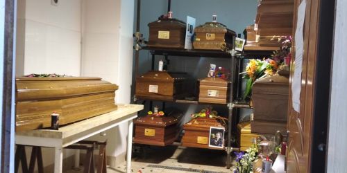 La mancanza di materiale primo impedisce la tumulazione dei defunti. Oltre trenta bare si sono accumulate nella sala mortuaria