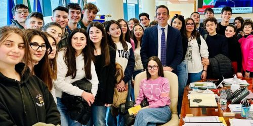 Catanzaro, gli studenti del liceo di Rossano nell’ufficio di Occhiuto. «Un’onda di energia»