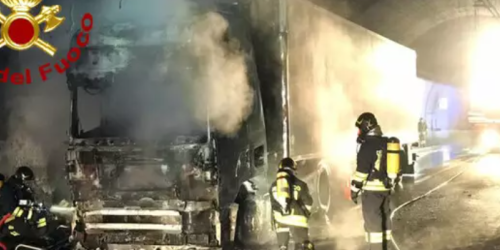 Camion a fuoco in galleria, 16 chilometri di coda