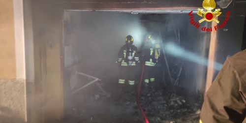 Il rogo ha coinvolto attrezzature agricole e da lavoro. Intervento dei vigili per spegnere le fiamme e mettere in sicurezza i luoghi