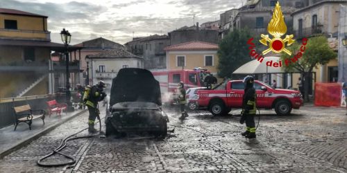 Le fiamme hanno avvolto una Ford Mondeo in transito nel centro abitato del borgo. Sul posto sono intervenuti i vigili del fuoco e i carabinieri