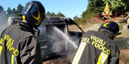 Probabile origine dolosa. Il rogo ha distrutto il mezzo che si trovava in una bosco, indagano i carabinieri