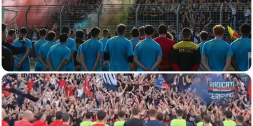 Cori di incitamento oggi nel corso delle sedute di rifinitura delle squadre giallorosse e rossoblù in vista della sfida di domani