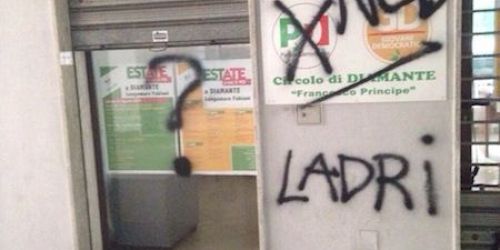 DIAMANTE Intimidazione al Circolo Pd “Francesco Principe” di Diamante. La nuova sede è stata imbrattata con scritte ingiuriose e offensive nei confro…