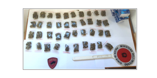 La polizia ha rinvenuto 40 involucri di marijuana (per complessivi 123 grammi) pronti allo smercio