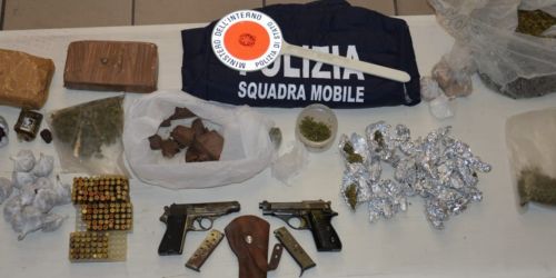 La Mobile ha rinvenuto nel quartiere Fondo Gesù quantitativi di eroina, hashish, cocaina e marijuana. Trovate anche pistole e cartucce
