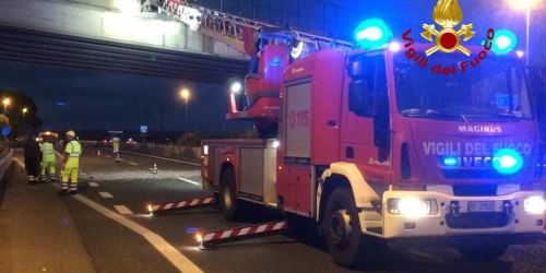 Intonaco rischia di cadere da un cavalcavia sulla “Due Mari”, intervengono i vigili del fuoco