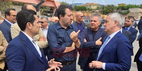 Il ministro e leader della Lega Salvini all’ex scalo merci di Lamezia. «Entro l’estate i cantieri del Ponte. Amministrative? Vogliamo vincere»