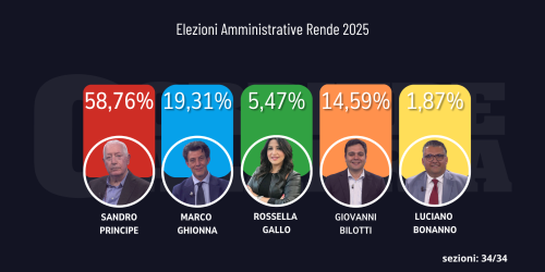 Alla più forte delle liste di Ghionna (Rende Azzurra, che supera FdI) le stesse preferenze della più debole di Principe (Italia del Meridione)