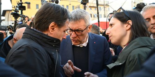 M5s in piazza contro la precarietà, abbraccio tra Conte e Schlein