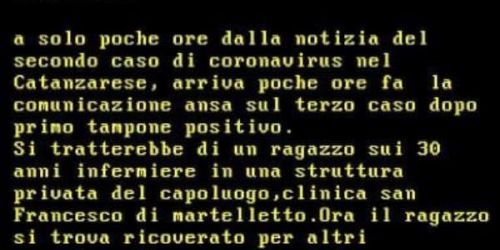 La notizia, circolata sui social, è stata smentita da fonti ufficiali della Regione. Desta qualche preoccupazione la paziente di Corigliano Rossano r…