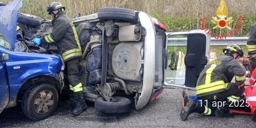 Carambola sulla Statale 280, auto si ribalta sulla carreggiata: tre feriti – FOTO