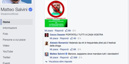 COSENZA «Questa mi mancava festival dell’immigrazione. Povera Italia e poveri italiani». È solo uno dei più “tranquilli” messaggi offensivi che in qu…