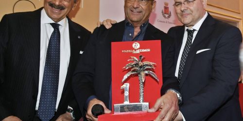 Sanremo, Carlo Conti premiato con la Palma d’Argento realizzata da Michele Affidato – FOTO