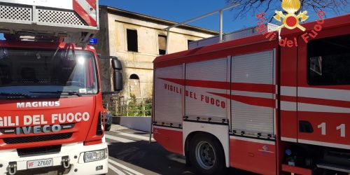Intervento dei Vigili del Fuoco. L’edificio era utilizzato probabilmente come rifugio notturno da persone senza fissa dimora