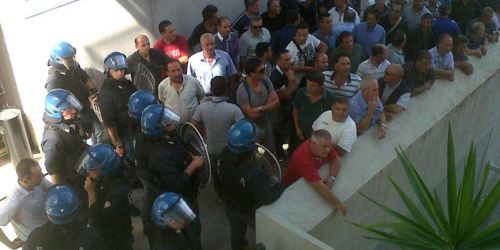 REGGIO CALABRIA Numerosi operai forestali in protesta a Reggio Calabria per rivendicare il pagamento degli stipendi. Si sono ritrovati dava…