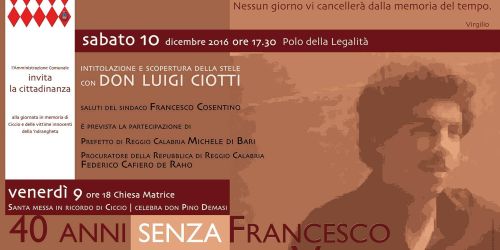 Cittanova ricorda Francesco Vinci e il suo no alla 'ndrangheta