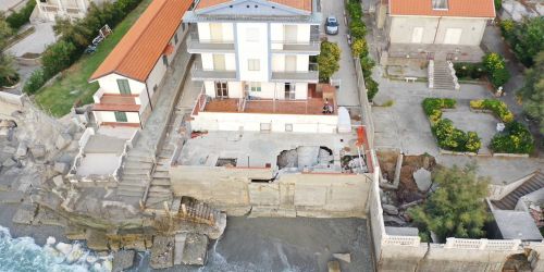 Fuscaldo, mura perimetrali lesionate e palazzi a rischio dopo le mareggiate – FOTO