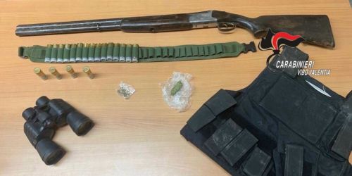 I carabinieri hanno fermato un 24enne e un 28enne a Gerocarne. Nell’abitazione scoperto un fucile calibro 12, munizioni e droga