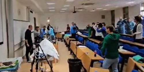 Il video realizzato nella pausa di un’esercitazione anatomica a Malta. Fnomceo: «Disdicevole»