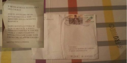 LAMEZIA TERME Una lettera anonima, scritta a caratteri cubitali e destinata ai proprietari del lido Cool bay di località Pesce e Anguille di Gizzeria…