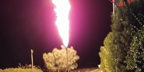I vigili del fuoco non potendo controllare la perdita di un bombolone interrato di 800 litri, ha bruciato il gas in modo controllato