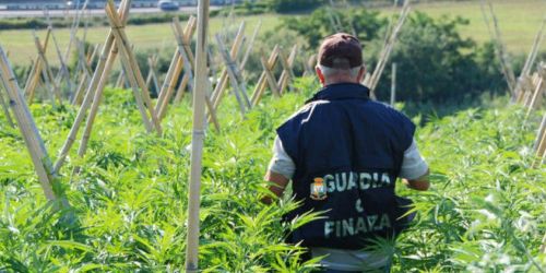 SIBARI Una coltivazione di marijuana mimetizzata in un agrumeto e schermata con una palizzata in legno e balle di fieno è stata scoperta dalla g…