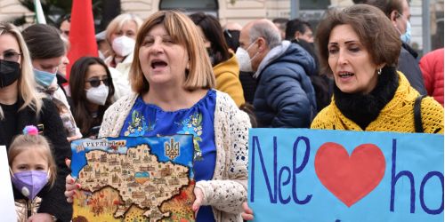 La piazza di Reggio si stringe attorno alla comunità ucraina. «Preoccupati per le nostre famiglie». Irto: «Abbiamo bisogno di un’Europa forte»